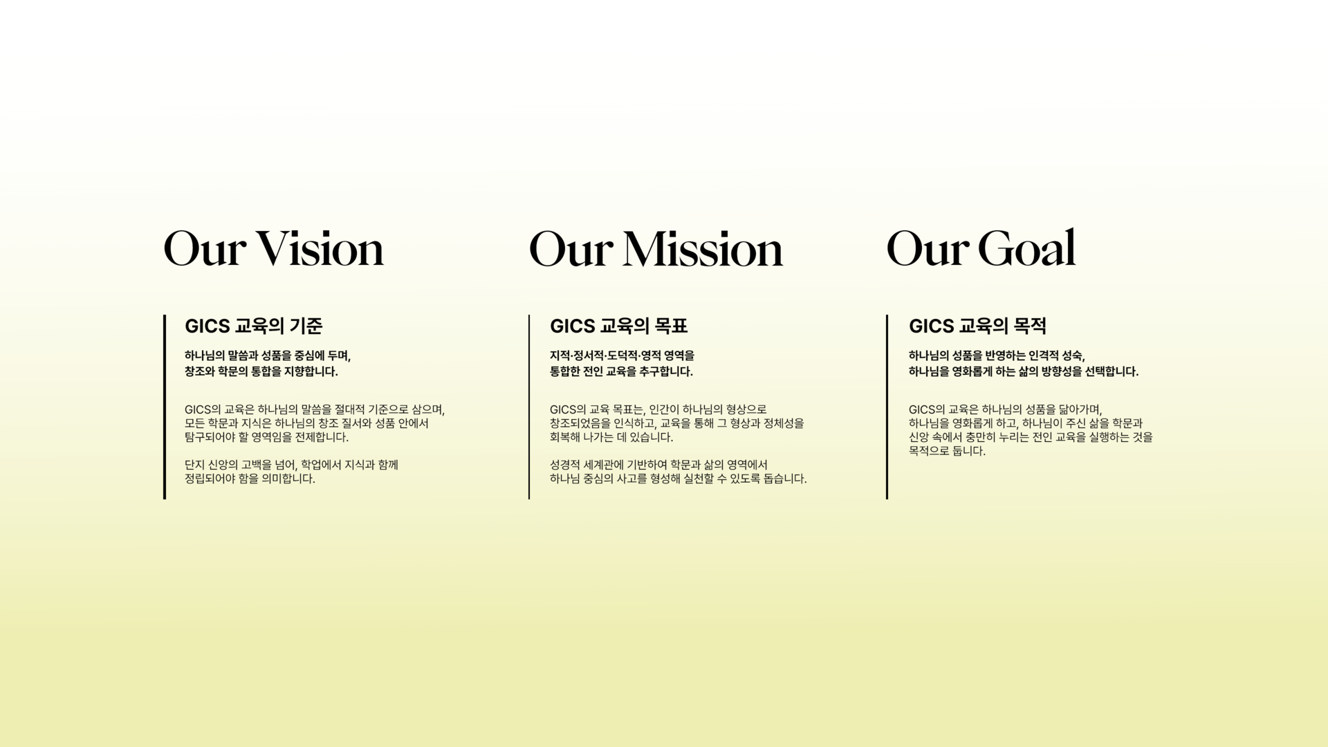 세상을 더욱 행복하고 아름답게 변화시키는 글로벌 리더들로 양성합니다.